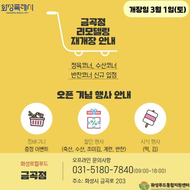 금곡점은 이번 리모델링으로 노후화된 시설을 교체하고 먹거리 코너를 신설해, 화성시에서 생산된 제철 채소류 등 한층 다양하고 풍성한 농수산물 500여 품목을 동부·동탄권 시민들에게 선보일 예정이다.