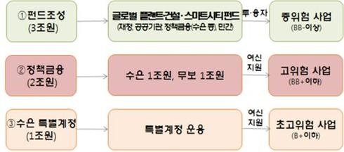 한편, 정부에서도 해외인프라시장 진출 시 금융지원을 위해 글로벌인프라펀드를 확대 조성 할 계획이며, 추가로 6조 원 규모의 금융지원패키지 조성을 추진할 계획라고 밝혔다.