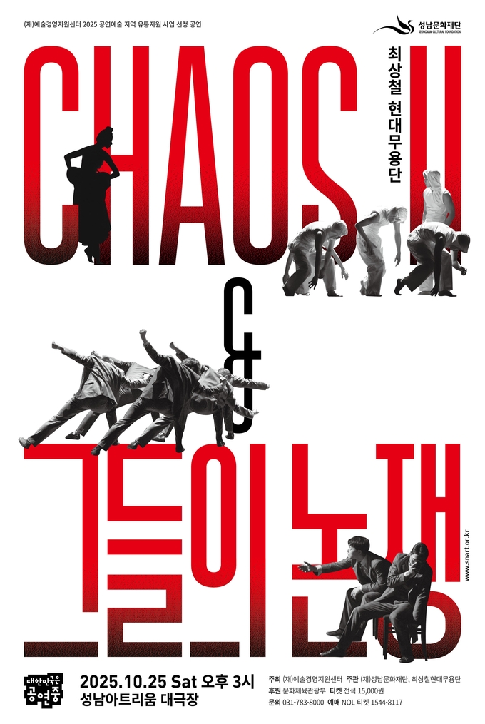 (비전21뉴스=정서영 기자) 성남문화재단(대표이사 윤정국)은 ‘(재)예술경영지원센터 2025 공연예술 지역 유통지원사업 선정작’으로 최상철현대무용단의 ‘CHAOS Ⅱ’와 ‘그들의 논쟁’을 오는 10월 25일(토) 오후 3시 성남아트리움 대극장에서 선보인다.