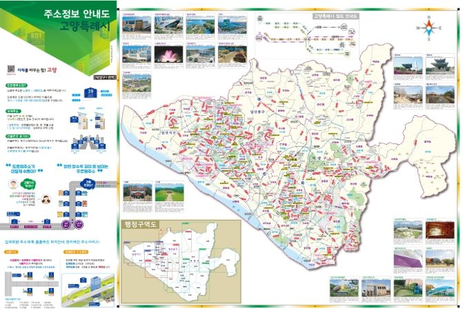 시 관계자는 “이번에 제작된 접지형 주소정보안내도는 고양시 도로구간 및 주요 시설물 정보를 정확하게 반영해 도로명주소가 낯선 시민들도 쉽게 활용할 수 있을 것”이라며 “택배 ‧ 유통 ‧ 부동산업 등 다양한 생활 업무 현장에서 유용하게 쓰이길 바란다”라고 말했다.