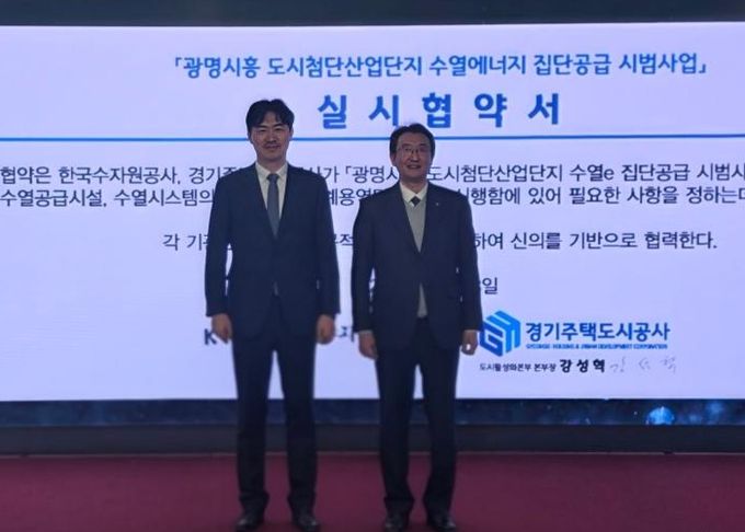 (비전21뉴스) 경기주택도시공사(GH)는 3일 GH 수원 본사 9층 역량개발센터에서 한국수자원공사(K-water)와 함께 ‘광명시흥 도시첨단산업단지 수열에너지 집단공급 시범사업’ 추진을 위한 실시협약을 체결했다고 밝혔다. 이 자리에는 양 기관 관계자 약 30명이 참석했다.