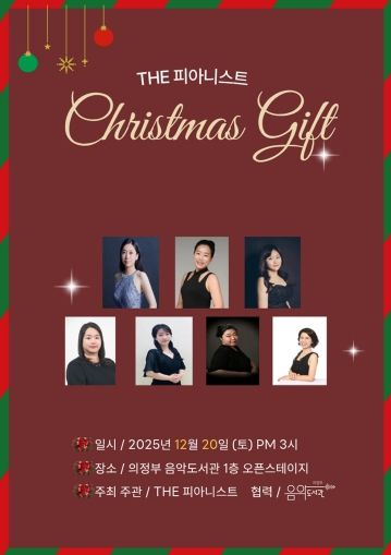 (비전21뉴스) 의정부음악도서관은 12월 20일 오후 3시, 1층 오픈스테이지에서 ‘The 피아니스트 크리스마스 선물’ 공연을 개최한다.