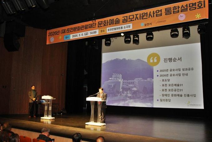 (비전21뉴스) 포천문화관광재단은 지난 6일 포천반월아트홀 소극장에서 ‘2026년 문화예술 공모지원사업 통합설명회’를 개최했다.