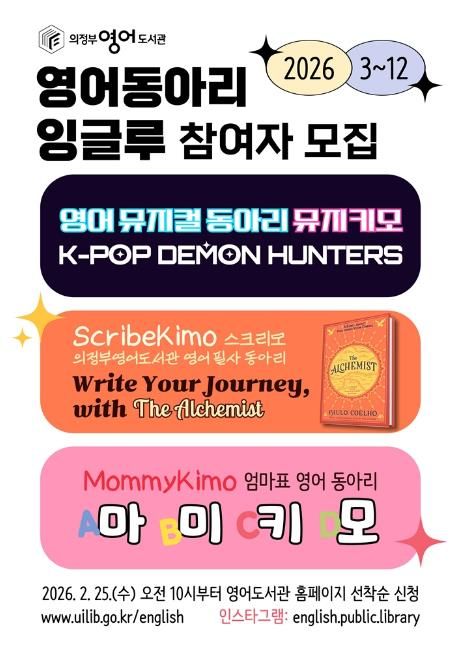 (비전21뉴스) 의정부영어도서관은 3월부터 12월까지 영어 뮤지컬, 영어 원서 필사, 엄마표 영어 등 다양한 활동으로 구성된 영어 동아리 ‘잉글루(Englu)’를 운영해 시민의 영어 역량 강화와 영어학습 공동체 활성화를 추진한다.