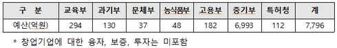 한편, 중기부가 과기부 등 관계부처를 통해 취합한 2018년도 창업지원 사업 규모는 총 7개부처 7,796억원으로 조사됐다.