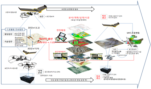 드론으로 취득된 다양한 공간·공사정보의 처리·가공·활용을 위해 LH는 세계 최초의 원스톱 운영시스템을 구축한다.
