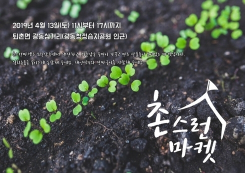 [비전21뉴스] 광주시 퇴촌면 농촌중심지활성화 추진위원회는 오는 4월 13일 2019년도 상반기 촌스런마켓을 개장한다고 27일 밝혔다.