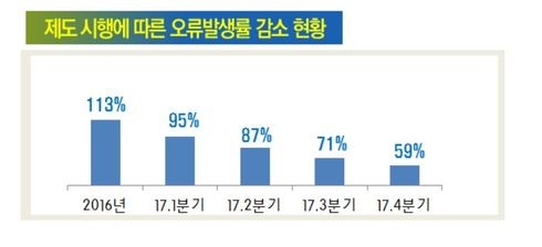 국방부는 부패예방 시스템 도입 결과 부패요인인 ‘오류발생비율’이 도입 이전이던 지난 2016년 113%에서 지난해 4분기에는 59%로 절반가량 감소했다고 밝혔다.