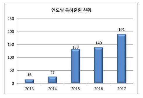 이러한 전망에 부응하듯, 지난 2013년, 2014년에 각각 16건, 27건에 불과했던 5G 이동 초광대역 서비스 관련 특허 출원은 지난 2015년에 133건이 출원돼 전년도에 비해 무려 5배 가까이 증가했고, 지난 2017년에도 191건이 출원돼 관련 특허 출원이 꾸준히 증가하고 있는 것으로 조사됐다.