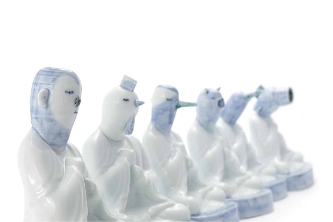 백자 특유의 깨끗함과 정갈한 청화 안료를 주재료로 작업하는 장현순 작가는 민화 속 동물문양이 갖는 의미를 불상을 통해 표현하는 ‘길상시리즈’를 선보인다.