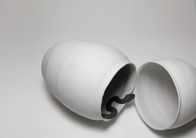 전통과 자연에 대한 탐구를 기반으로 그림이 주가 되는 공예작품과 대형 항아리 제작을 병행하는 오유진 작가는 이번 전시에서 죽음을 재해석한 작품들을 선보인다.