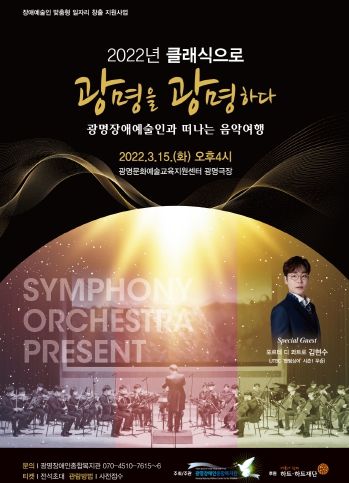(비전21뉴스) 광명시 광명 장애인종합복지관은 '장애예술인 맞춤형 일자리 창출 지원사업'의 일환으로 15일 오후 4시 광명 문화예술교육지원센터 광명극장에서 루멘챔버오케스트라단과 광명 장애청년챔버오케스트라단의 특별기획 연주회를 개최한다.