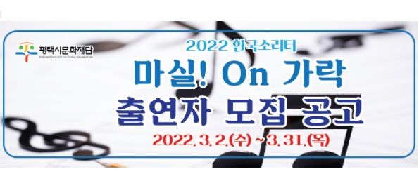 (비전21뉴스) 평택시 문화재단은 지역에서 활동하고 있는 예술 단체의 우수한 예술성을 발휘해 지역주민에게 다양한 공연문화 향유 기회를 제공하고, 문화예술단체의 활발한 활동 기회를 제공하기 위해 사업에 참여할 공연단체를 3월 31일 목요일까지 모집한다.