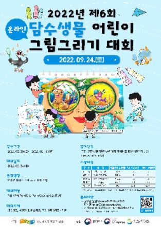 담수생물 어린이 그림그리기 대회는 다양한 담수생물 및 탄소중립을주제로 8월 29일부터 9월 18일까지 전국 어린이(7∼13세)를 대상으로 선착순 500명까지 접수받아 ‘온라인 화상회의 프로그램(줌 사용예정)’을 이용해 9월 24일에 대회를 진행한다.