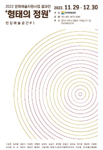 (비전21뉴스) 여주세종문화관광재단은 오는 11월 21일부터 12월 30일까지 빈집 예술공간#1에서 2022년 여주세종문화관광재단 문화예술 지원사업 결과전 ‘형태의 정원’을 진행한다.