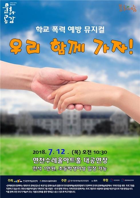 뮤지컬 ‘우리 함께 가자’는 최근에 심각한 사회문제로 떠오르고 있는 학교폭력 및 청소년 문제를 해결하기 위한 학교폭력 예방 프로그램으로, 학교에서 발생할 수 있는 왕따 문제를 소재로 하여 학생들에게 학교폭력이나 따돌림을 직접 보여주고, 느끼게 함으로써 서로를 보듬어 주고 이해할 수 있도록 구성했다.