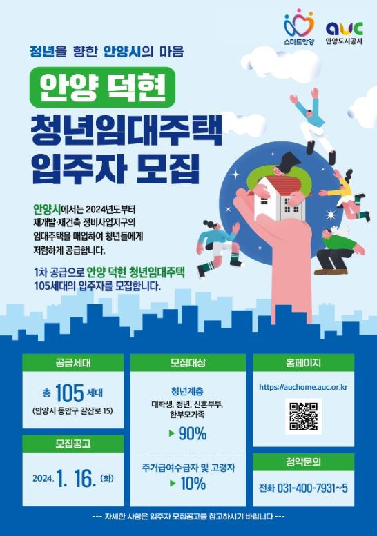 최대호 안양시장은 “덕현지구를 시작으로 오는 2032년까지 청년주택을 순차적으로 공급할 예정”이라며 “새해에도 안양시는 청년들의 안정적인 정주 환경 조성을 위해 최선을 다하겠다”고 말했다.