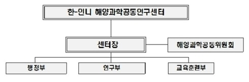 인니 치르본의 반둥공과대학 제2캠퍼스 내에 마련된 해양과학공동연구센터는 공동센터장 2명을 중심으로 행정부, 연구기술부, 교육훈련부 등 3개 부서로 나뉘어 운영된다. 우리측은 센터 운영 예산을 지원하고, 인니측은 사무실 등 센터 관련 인프라를 지원하여 함께 연구과제를 추진해 나갈 계획이다.