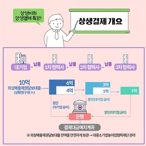 은행이 대기업 신용도를 활용하여 대금지급을 보증하고, 외상매출채권담보대출 할인 때 대기업이나 공공기관에게 적용되는 저금리를 2차, 3차 협력기업도 누릴 수 있게 설계했다.