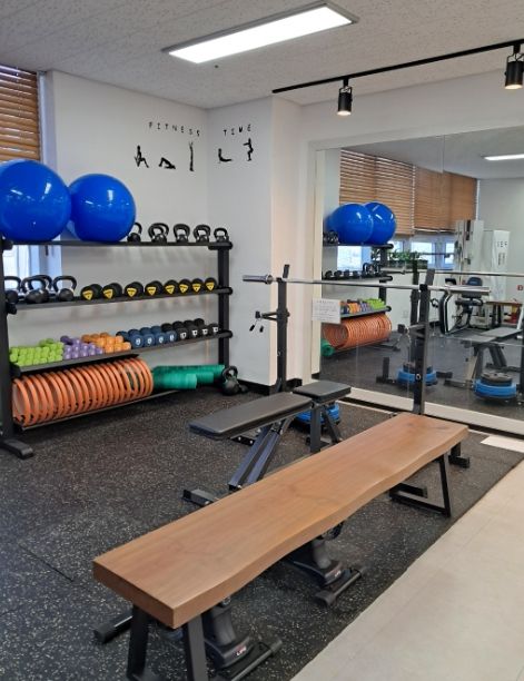 헬스 공간에는 런닝머신, 수력저항 자전거 같은 3종의 유산소 장비와 벤치프레스, 케틀벨, 바벨, 덤벨 등 근력운동 도구를 배치했다. 또한, 스마트TV를 활용해 운동 정보를 쉽게 접할 수 있도록 조성했다.