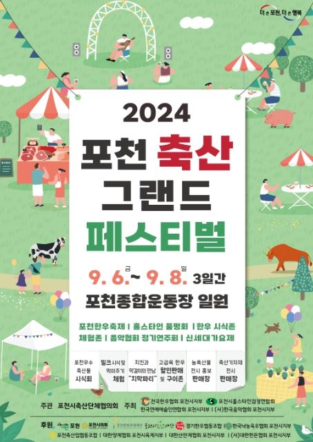 한편, 포천시축산단체협의회의 주관으로 진행되는 ‘2024 포천 축산 그랜드 페스티벌’은 지난 5월 인접 철원군의 아프리카돼지열병(ASF) 발생으로 인해 차단 방역 차원에서 잠정 연기된 바 있다.