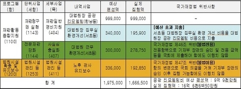 현행 국가재정법 45, 46, 47조는 세출예산이 정한 목적 외에는 사용할 수 없도록 규정하고 있으며, 예산의 전용의 경우에는 기재부 장관의 승인을 거쳐야 하며, 예산의 이용의 경우에는 미리 국회 의결을 거쳐 기재부 장관의 승인을 얻도록 하고 있음에도 불구하고, 이를 전혀 지키지 않아 그야말로 불법을 자행한 것이다.
