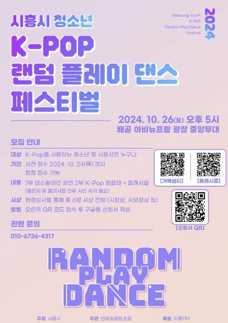 (비전21뉴스) 시흥시가 배곧 아비뉴프랑 광장에서 열리는 ‘시흥시 청소년 케이팝 랜덤 플레이댄스 페스티벌’의 참여자를 현재 모집하고 있다.