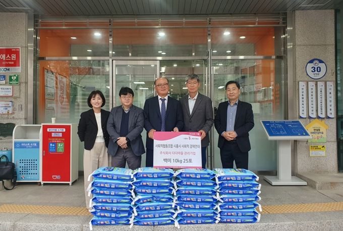 (비전21뉴스) 사회적협동조합 시흥시 사회적경제연대에 속한 ㈜다다마을 관리기업이 지난 14일 연성동 관내 어려운 이웃에게 백미 10kg 28포를 후원했다. 후원받은 백미는 관내 수급자 및 저소득 가구에 전달될 예정이다.