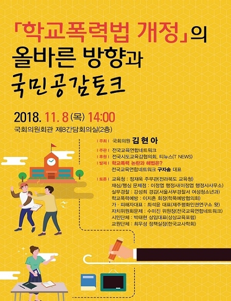 기조발제를 맡은 구자송 전국교육연합네트워크 상임대표는“학교폭력 문제를 학교 갈등조정과 교육적 회복으로 전환해야 한다.”고 언급하며, 학폭 예방법 개정을 위한 4가지 정책을 제안할 예정이다.