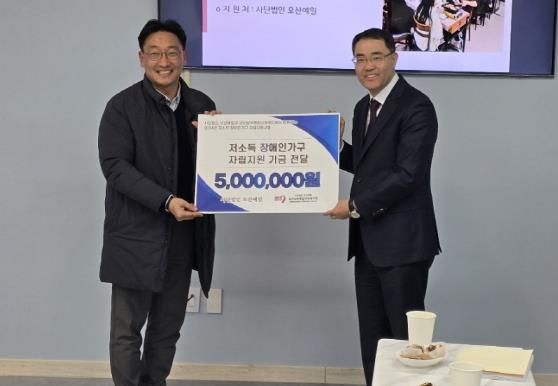 (비전21뉴스) 지난 15일, 사단법인 오산예일은 오산남부종합사회복지관에게 지역 내 저소득 장애인 가구의 자립지원을 위한 후원금 500만원을 기탁했다. 후원금은 오산남부종합사회복지관에서 진행하는 “저소득 장애인 가구 자립지원 사업”의 기금으로 사용될 예정이다.
