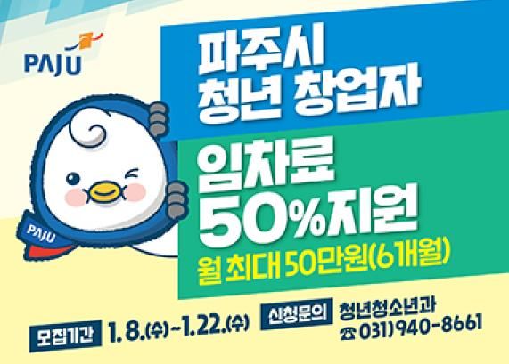 청년창업자 임차료 지원사업 대상자로 선정되면 6개월간 월 임차료의 50%(월 최대 50만 원)가 지원된다.