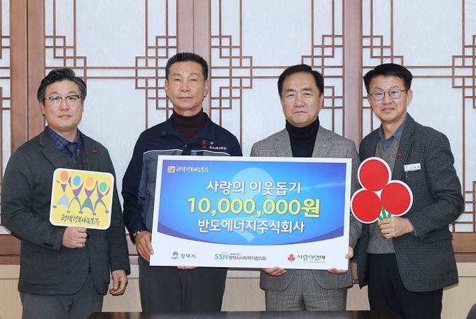 이에 정장선 평택시장은 “연초부터 평택시 관내 어려운 이웃들을 위해 후원해주신 반도에너지주식회사 정영은 대표님을 비롯해 임직원분들께 감사드린다”며 “앞으로도 지속적인 관심과 지원을 부탁드린다”고 말했다.