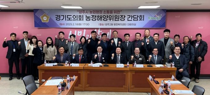 이번 간담회에는 방성환 위원장을 비롯해 이오수, 이영주 도의원이 참석했으며, 경기도 농업정책과장, 축산정책과장, 지도정책과장과 양주시 시장, 의장, 농업기술센터 소장, 지역농협 관계자 등이 함께해 양주시 농업 현안과 발전 방향을 논의했다.