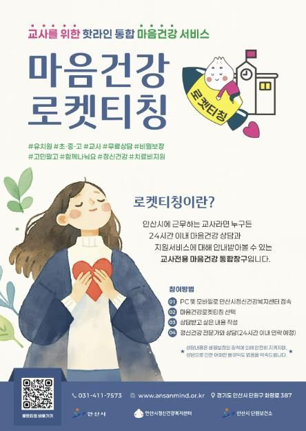 이번 서비스는 관내 교사들이 안산시정신건강복지센터 누리집에서 손쉽게 마음건강 상담과 서비스를 안내받을 수 있도록 구성한 교사 전용 통합창구다.