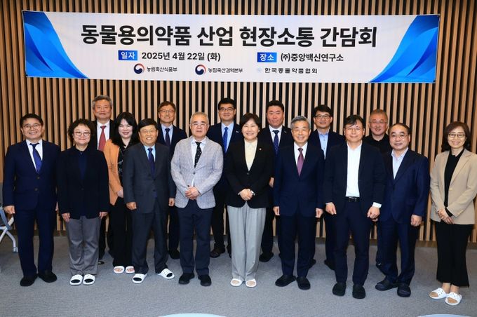 (비전21뉴스) 송미령 농림축산식품부 장관은 4월 22일 오후 ㈜중앙백신연구소를 방문하여 동물용 의약품 및 의료기기 제조기업 대표, 벤처기업 대표 및 R&D 지원기관 관계자 등과 간담회를 개최했다.