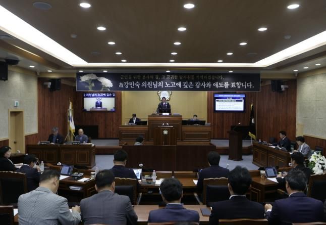 회의에 앞서 지난 4월 29일, 제330회 임시회 회기 중에 유명을 달리한 故 강민숙 의원의 명복을 기리기 위해 참석자 전원이 묵념하는 시간을 가졌다.