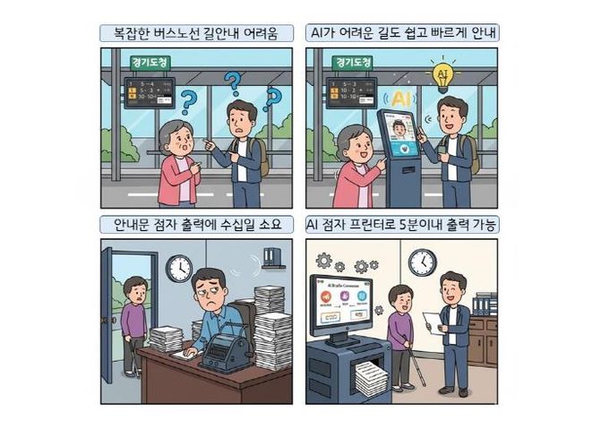 (비전21뉴스) AI 키오스크가 실시간 교통 상황을 분석해 최적 경로와 환승 정보를 음성으로 안내하고, 수개월 걸리던 문서 분석-점자 번역-출력 과정을 단 5분 만에 가능하게 하는 AI 점자프린터 기술이 경기도에서 실증된다.