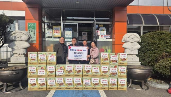 (비전21뉴스) 연천군 연천읍 소재 기독교 대한감리회 상리교회는 지난 6일 성도들의 기부 성금으로 마련한 이웃사랑 후원물품 라면(2.8KG) 100박스를 연천읍에 기탁했다.