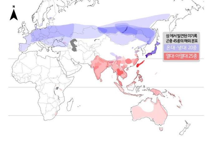 국립호남권생물자원관 연구진이 이들 미기록종을 분석한 결과, 55.5%인 25종이 열대·아열대성 곤충이며, 나머지 20종은 온대·냉대성 곤충으로 나타났다.