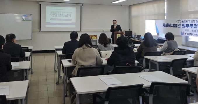 (비전21뉴스) 지난 9일, 안성시지역사회보장협의체는 한경국립대학교 산학협력관에서 ‘사회복지법인 외부추천이사 및 후보의 역량강화 교육’을 진행했다.