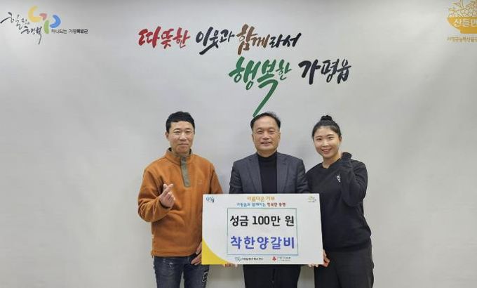 (비전21뉴스) 가평군 가평읍 경춘로 소재 착한양갈비는 지난 19일 행정복지센터를 방문해 이웃돕기 성금 100만 원을 기탁했다.