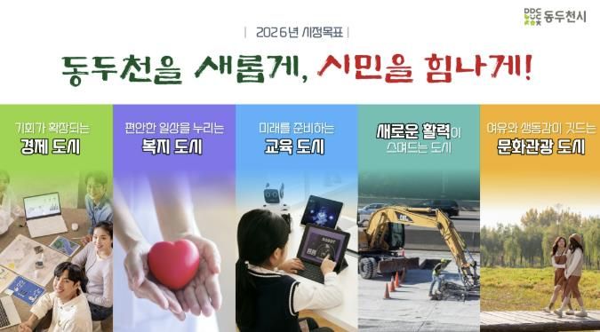 이처럼 동두천시는 ‘동두천을 새롭게, 시민을 힘나게!’라는 구호를 경제·복지·교육·공간·문화관광의 다섯 축 위에 촘촘히 구현하며, 2026년을 희망이 현실이 되는 도시의 시간으로 만들어가고 있다. 거창한 표현보다 시민의 체감으로, 선언보다 실행으로 답하겠다는 시정 운영 방향은 도시의 내일을 한층 선명하게 한다.