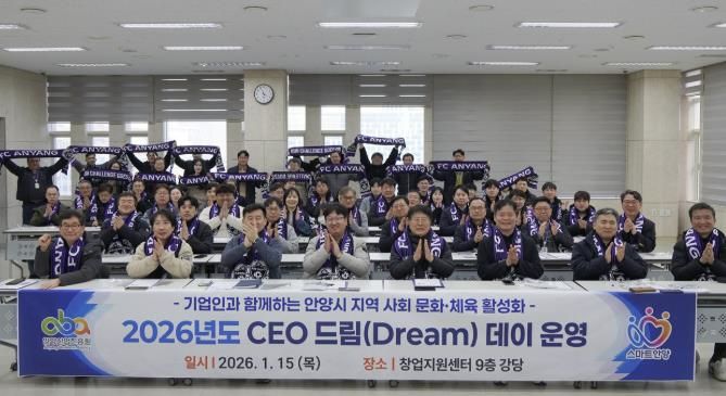 (비전21뉴스) 안양산업진흥원은 15일 오후 3시30분 안양창업지원센터 강당에서 관내 기업인 150여 명을 대상으로 지역사회 문화·체육 활성화를 위한 ‘2026 CEO 드림(Dream) 데이’를 열었다.