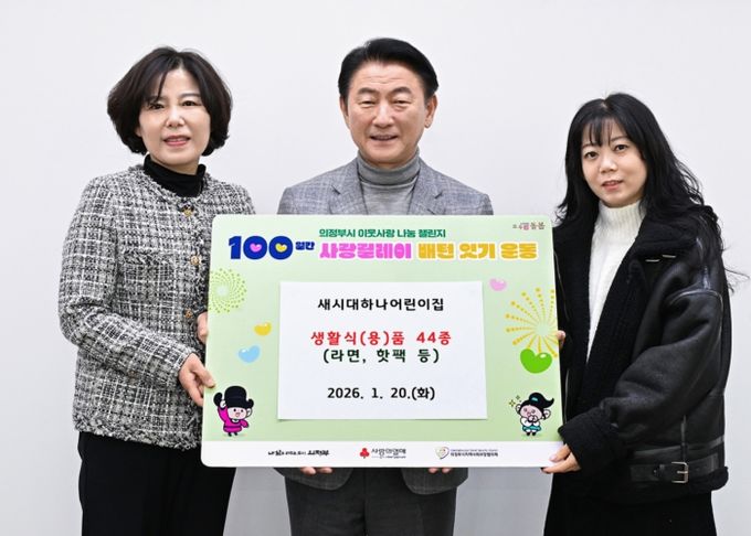 (비전21뉴스) 의정부시는 1월 20일 새시대하나어린이집이 ‘100일간 사랑릴레이 배턴 잇기’에 동참해 관내 저소득층을 위한 생활식(용)품 44종(라면, 핫팩 등)을 기부했다고 밝혔다.