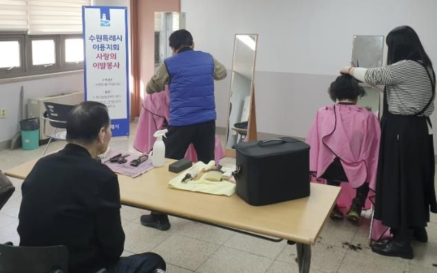 (비전21뉴스) 수원시 영통구 매탄3동에 위치한 미용실 ‘시저스맨’이 지역 내 저소득 노인과 장애인을 위한 정기적인 이발 봉사를 이어가고 있다.