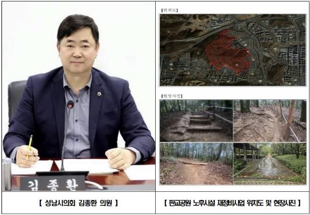 (비전21뉴스) 성남시의회 국민의힘 김종환 의원(판교·백현·운중·대장동, 예산결산특별위원장)은 분당구 판교동 판교공원 일원 노후 산책로와 바닥포장 등을 정비하는 재정비공사가 본격 추진됨을 밝혔다.