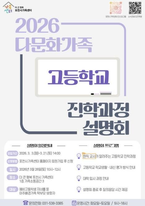 (비전21뉴스) 포천시 직영 더 큰 행복 포천시가족센터가 오는 28일, '2026 다문화가족 고등학교 진학과정 설명회'를 개최한다.