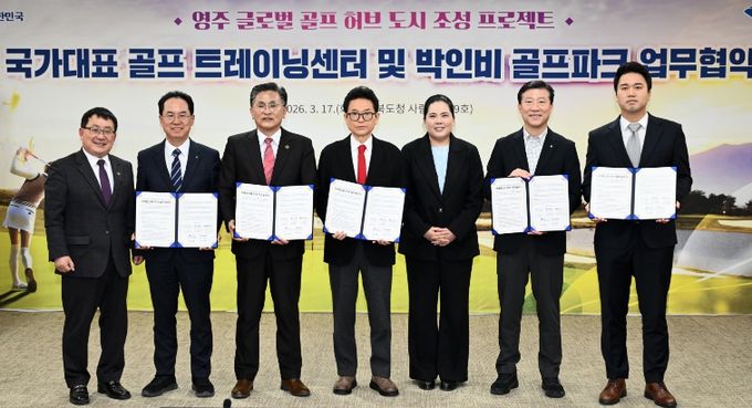 (비전21뉴스) 경상북도는 3월 17일 경북도청에서 ‘영주 국가대표 골프 트레이닝 센터 및 박인비 골프파크 조성사업을 위한 업무협약’을 체결하고 ‘영주 글로벌 골프 허브 도시 조성 프로젝트’를 본격 가동한다.
