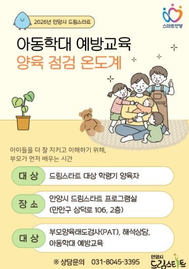 (비전21뉴스) 안양시가 아동 학대를 사전에 차단하고 건강한 양육 환경을 조성하기 위해 맞춤형 부모 교육 프로그램인 ‘2026 드림스타트 양육 점검 온도계’를 본격 가동한다고 18일 밝혔다.