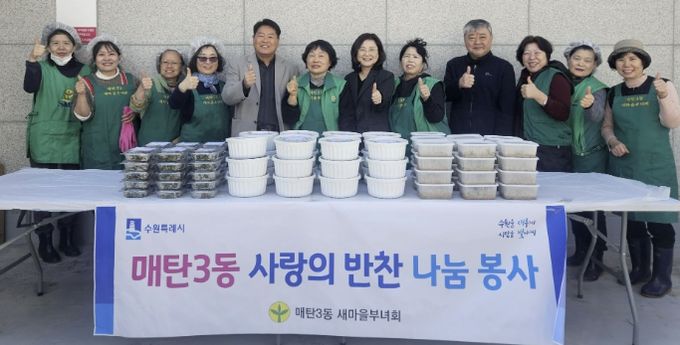 김병목 매탄3동장은 “반찬 나눔에 참여해주신 새마을부녀회 회원님들께 감사드리며 따뜻한 매탄3동 지역 사회를 만들기 위해 노력하겠다”고 답했다.